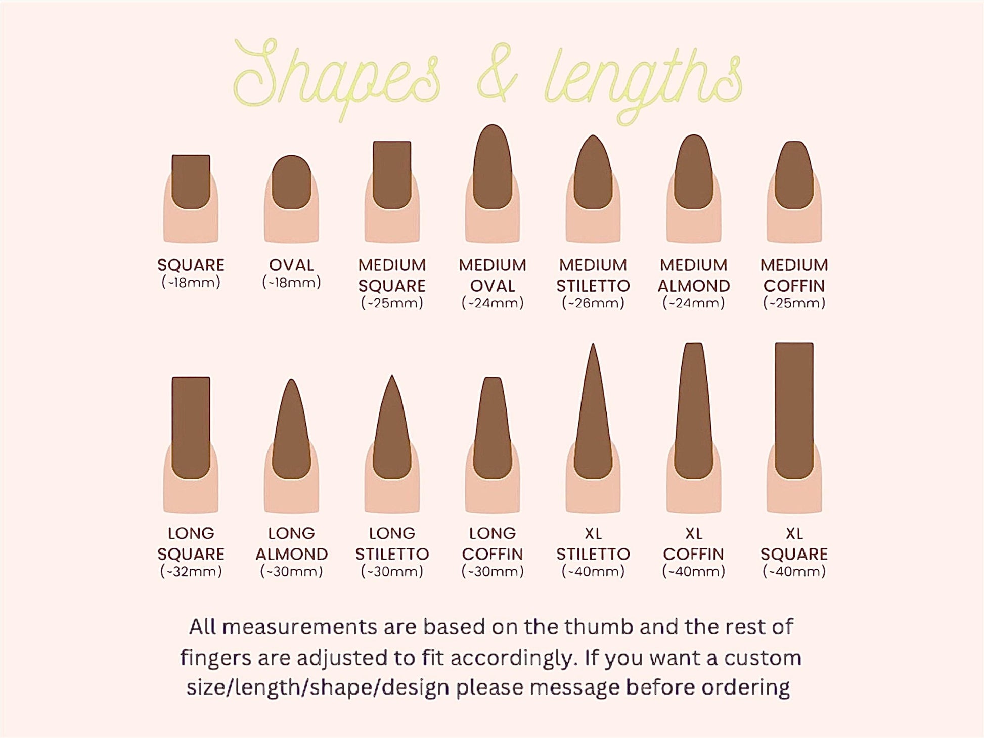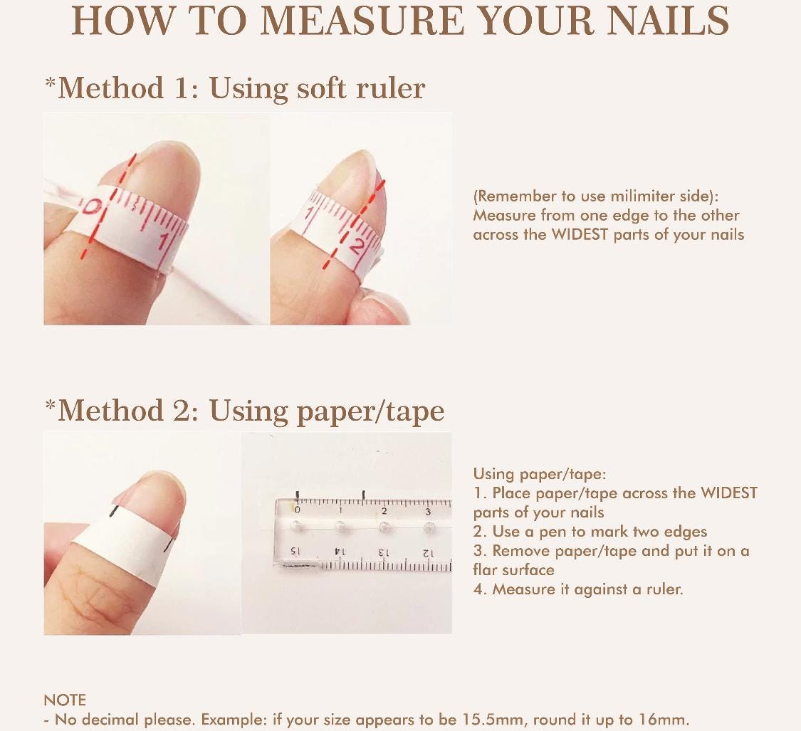 Each set includes 10 nails of your sizes. The application process is super easy and can be done within a few minutes! You can watch "how to apply" video on our home page.