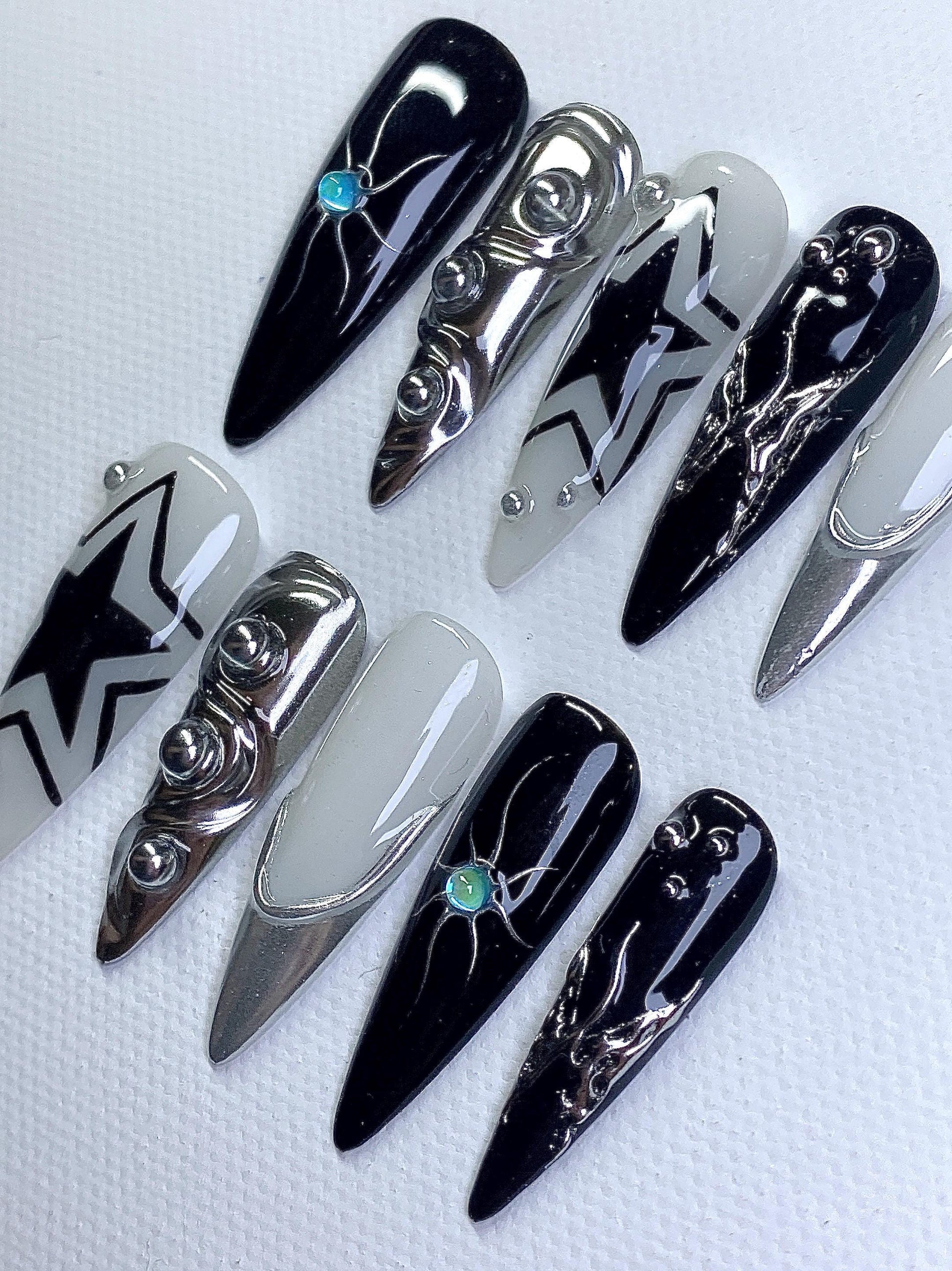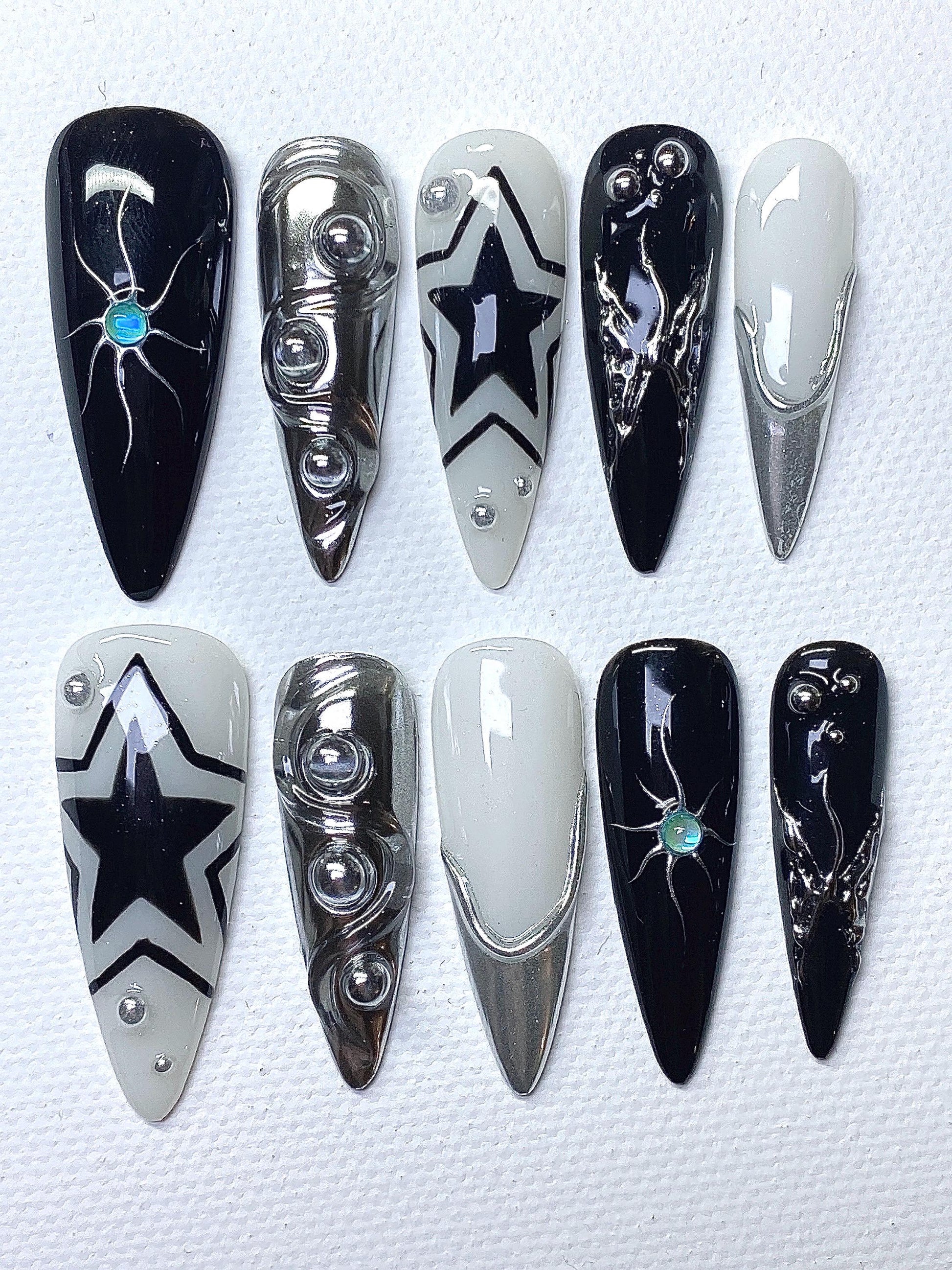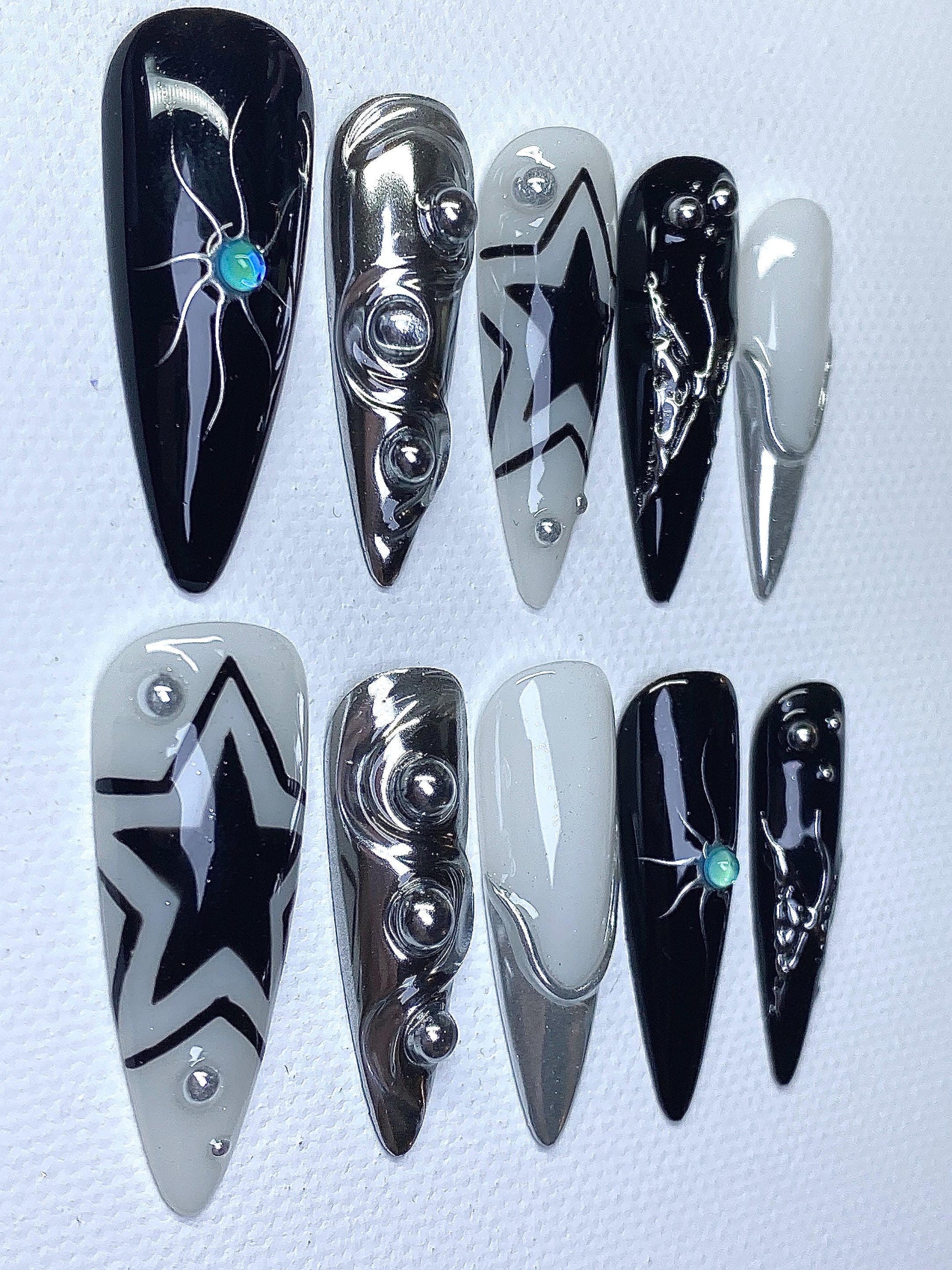Unleash your dark side with our Superstar Nail Set – a bold fusion of edgy streetwear, futuristic glam, and gothic elegance.